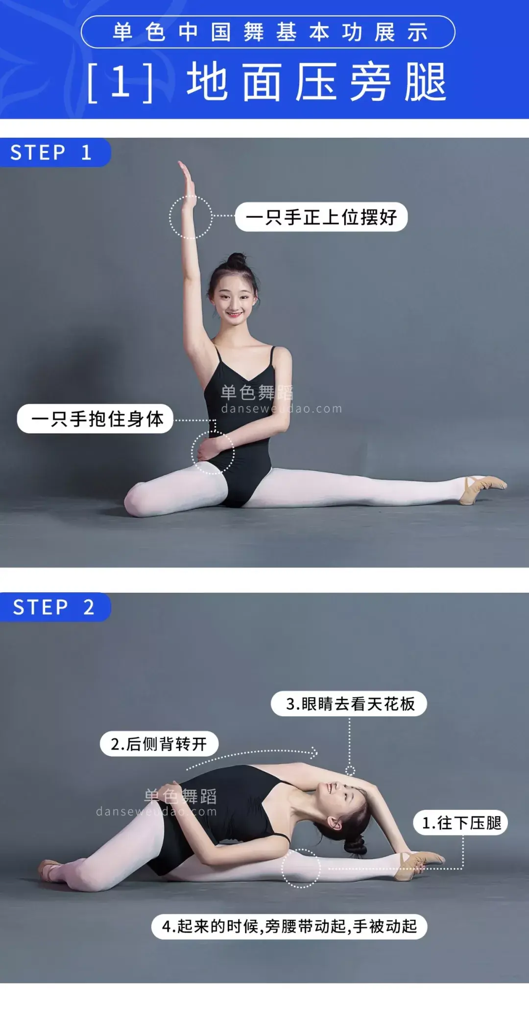 压腿是舞蹈基础训练中最为基本的训练内容,分别为