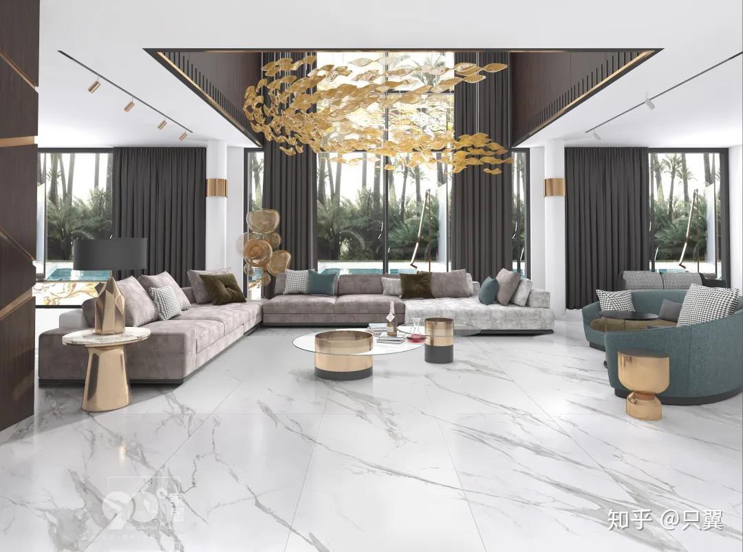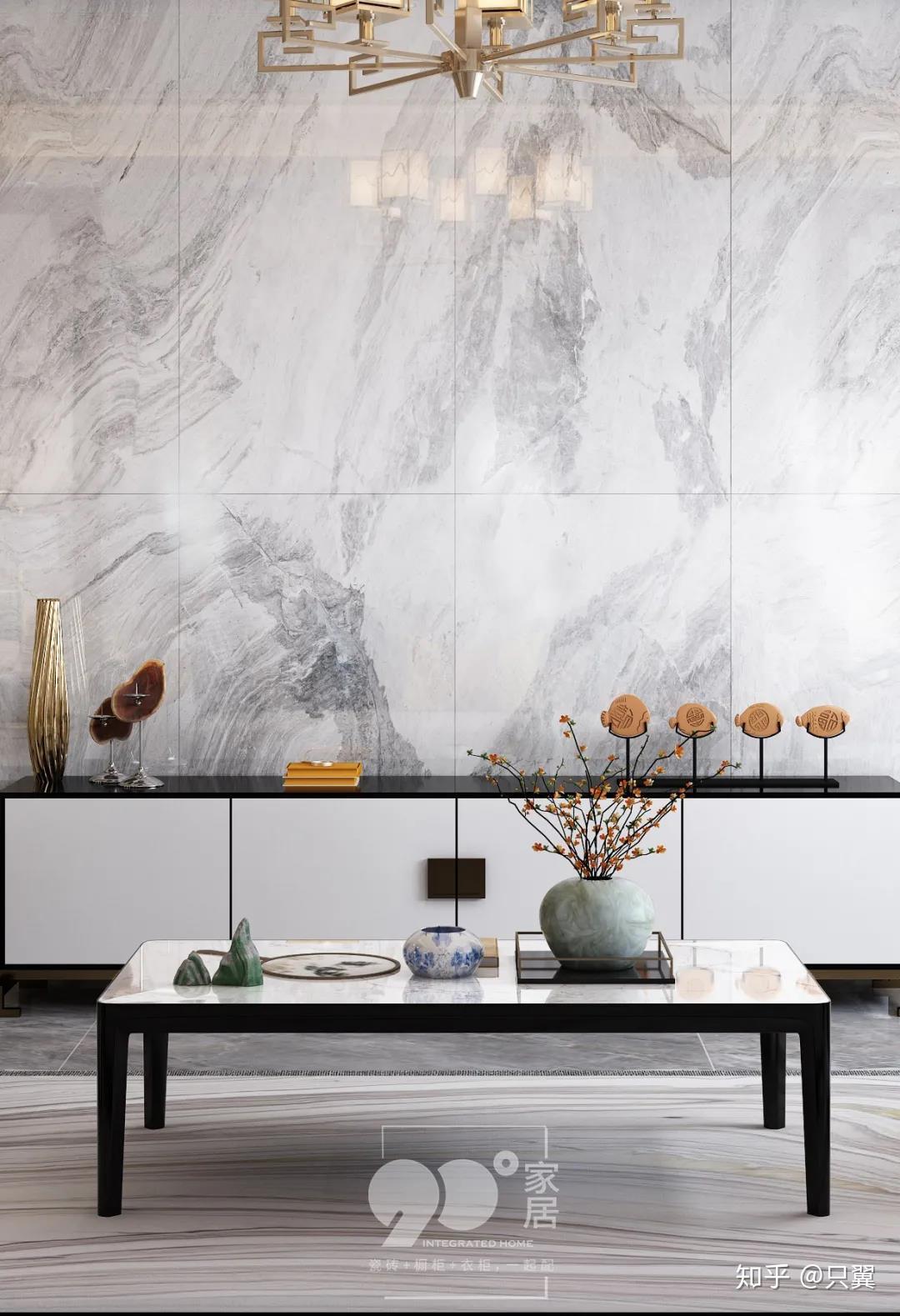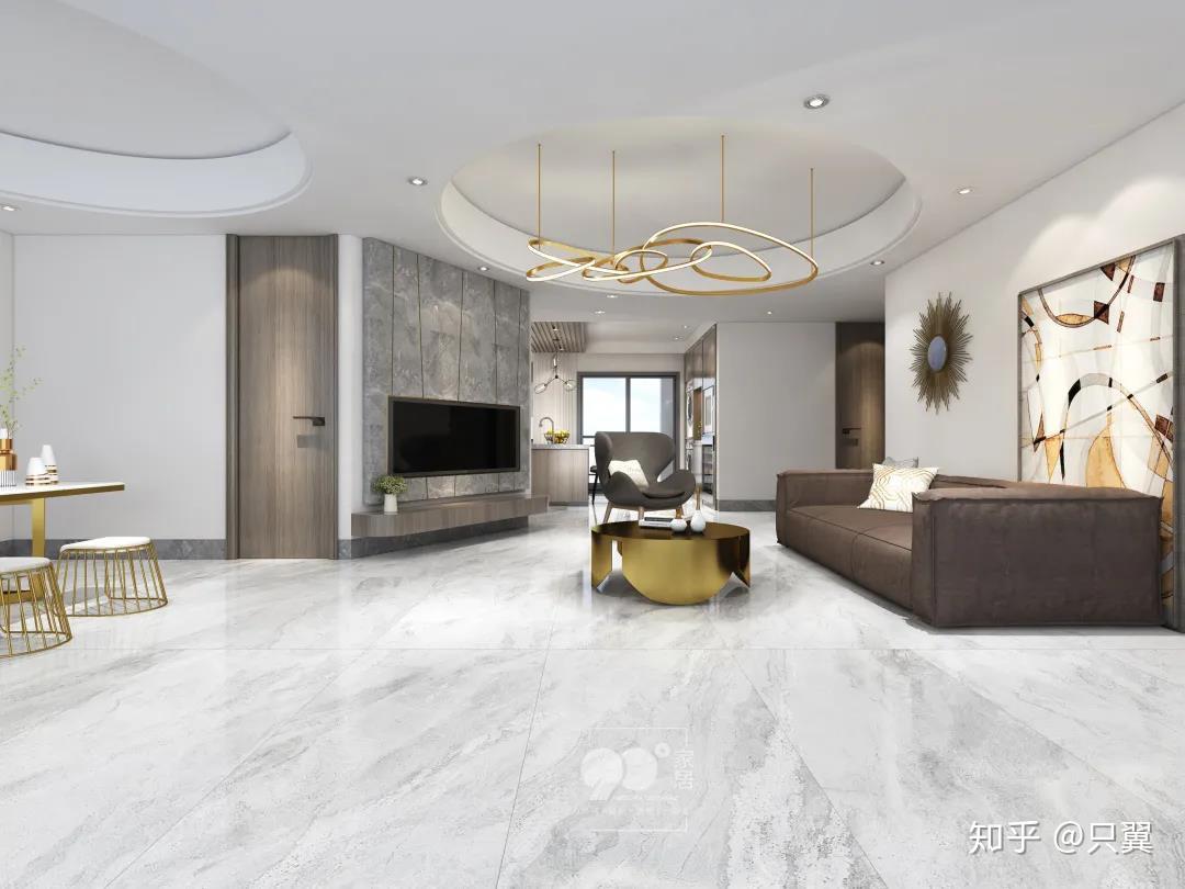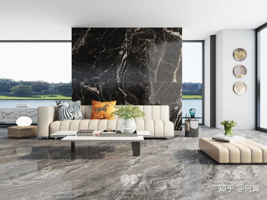 当前,国内住房室内高度平均3米,750x1500mm产品竖向贴墙只需2片,片数少留缝少,让空间更显简洁与高级。相对超大规格,750x1500mm规格施工铺贴方便,同样适合大户型的客厅空间使用。